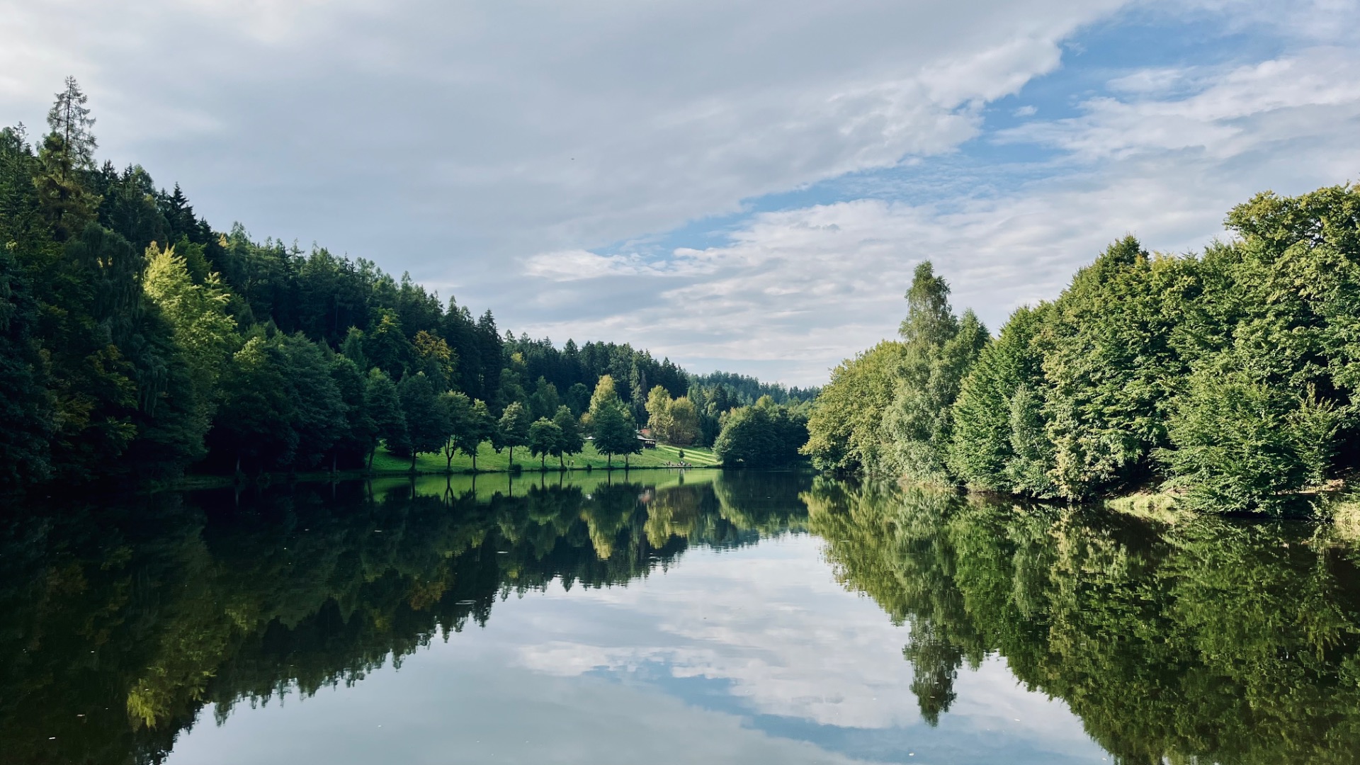 Stačí jen přejít louku asi 300 metrů a máte ke koupání v horkých dnech celou přehradu.
